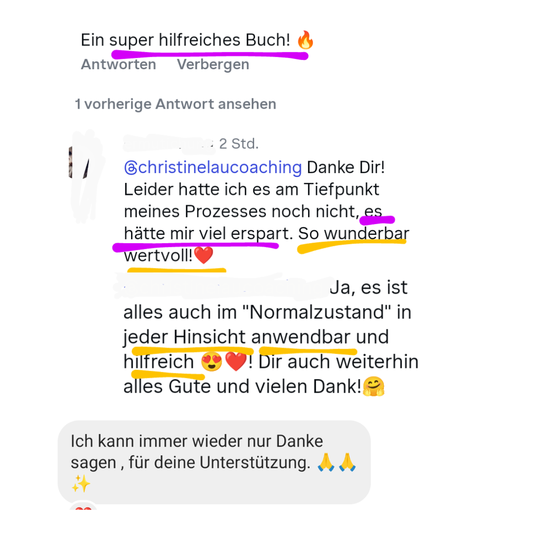 Damit Du aufhörst, Dir für alles die Schuld zu geben und an Dir zu zweifeln und endlich beginnst, Dich zu stärken und wieder aufzubauen in Deinem Tempo, und zwar nachhaltig und gesund.